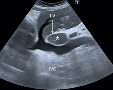 6. Crosses the midline, making it easily visible in both transverse and longitudinal scans